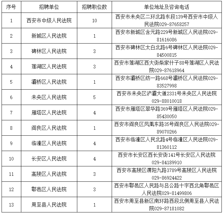 西安法院2023年度面向社會(huì)公開(kāi)招聘聘用制書(shū)記員職位表